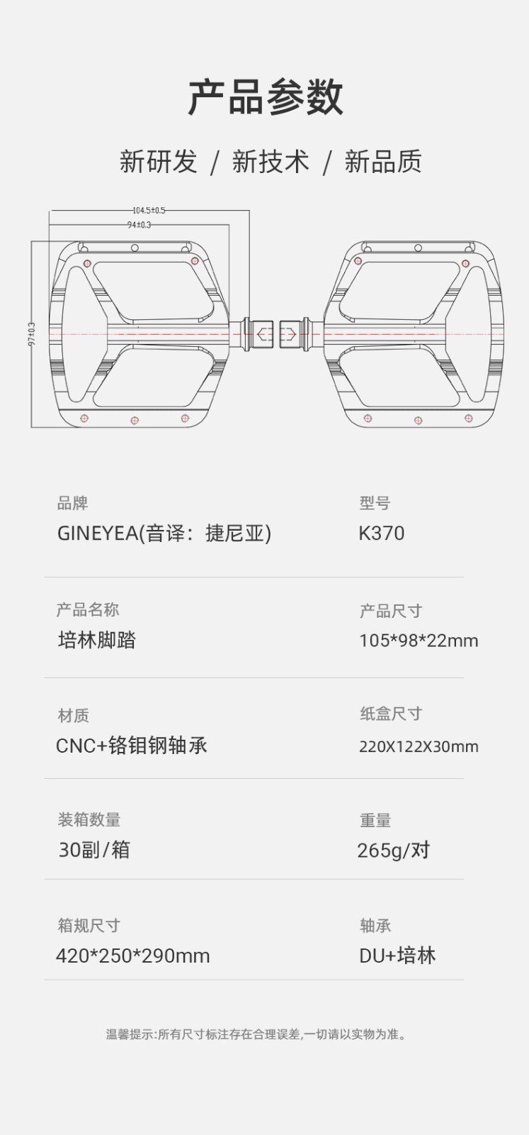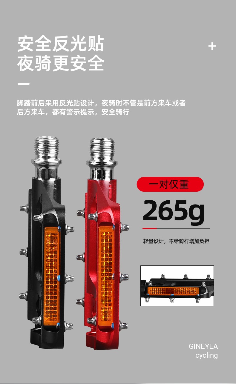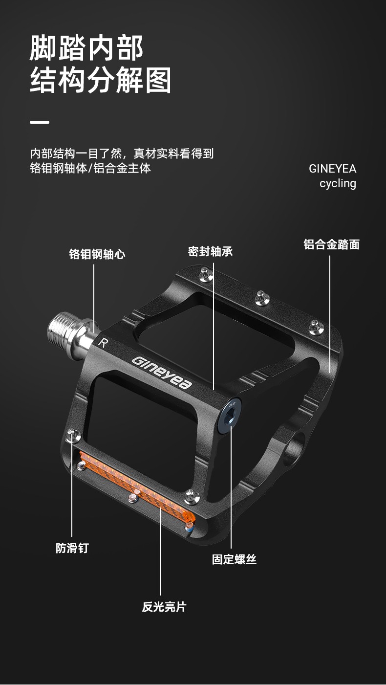 Gineyea碳纖維腳踏自行車公路車山地車防滑釘踩面鈦合金軸腳踏