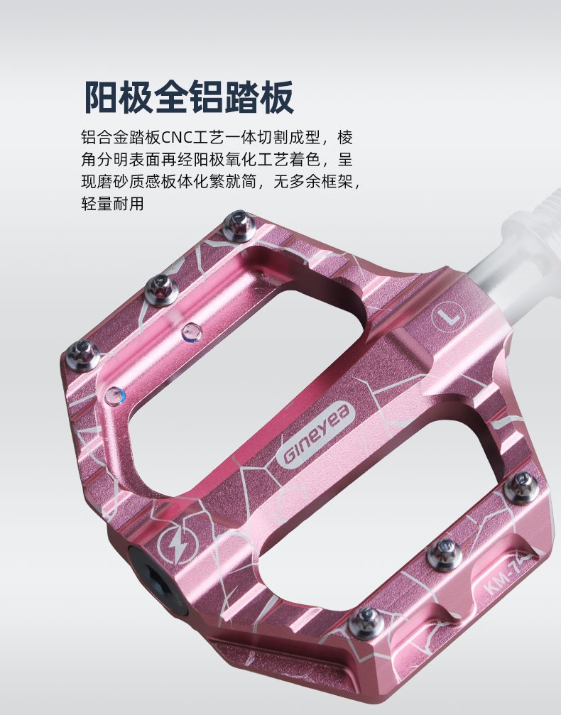 Gineyea碳纖維腳踏自行車公路車山地車防滑釘踩面鈦合金軸腳踏