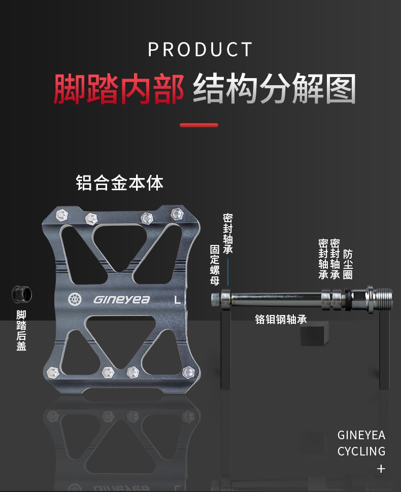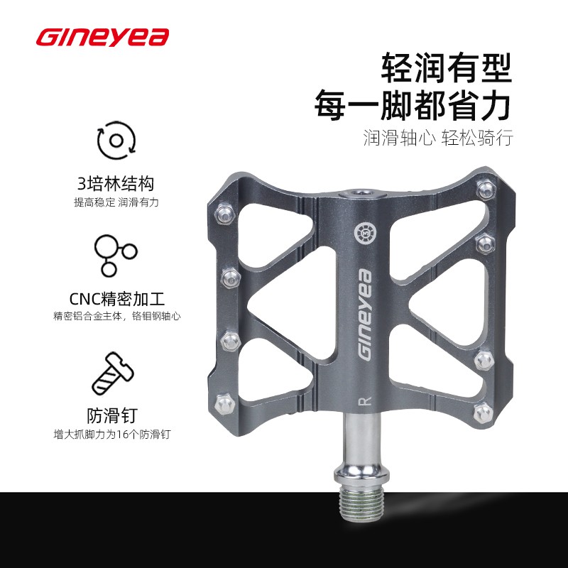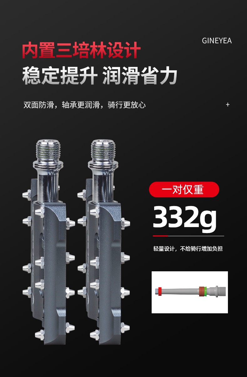 Gineyea碳纖維腳踏自行車公路車山地車防滑釘踩面鈦合金軸腳踏