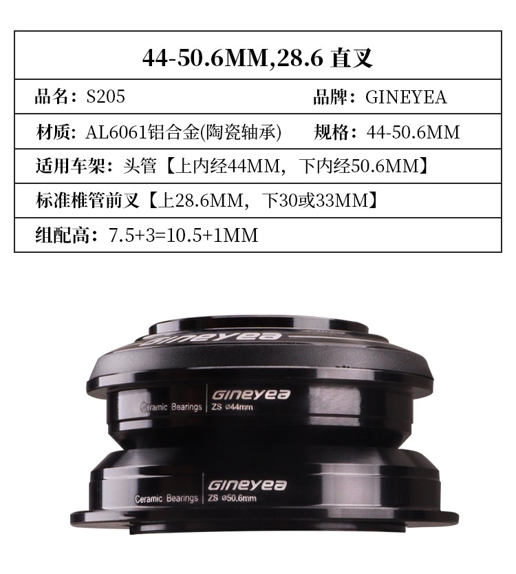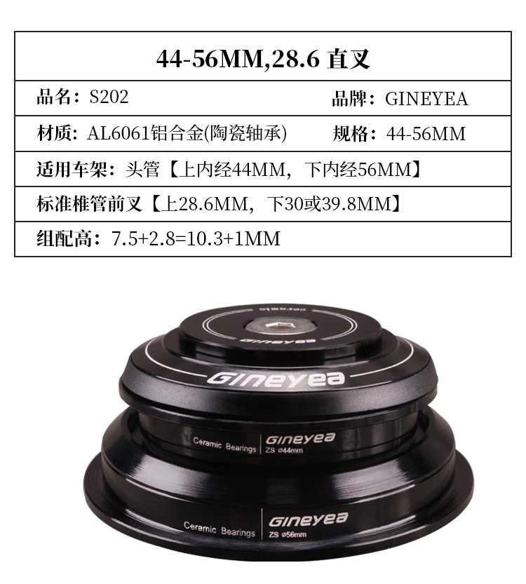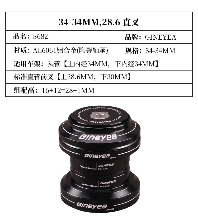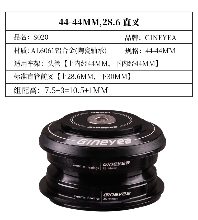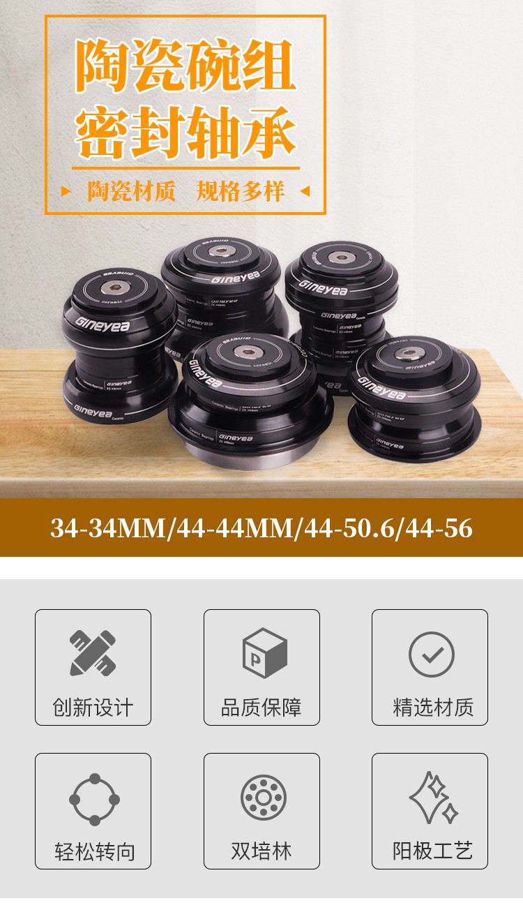 景曄自行車前叉腕組陶瓷軸承直管34/44/41/41.8mm椎管44-50.6/56