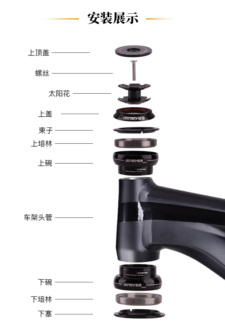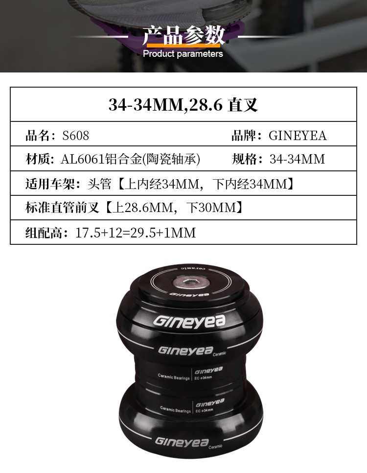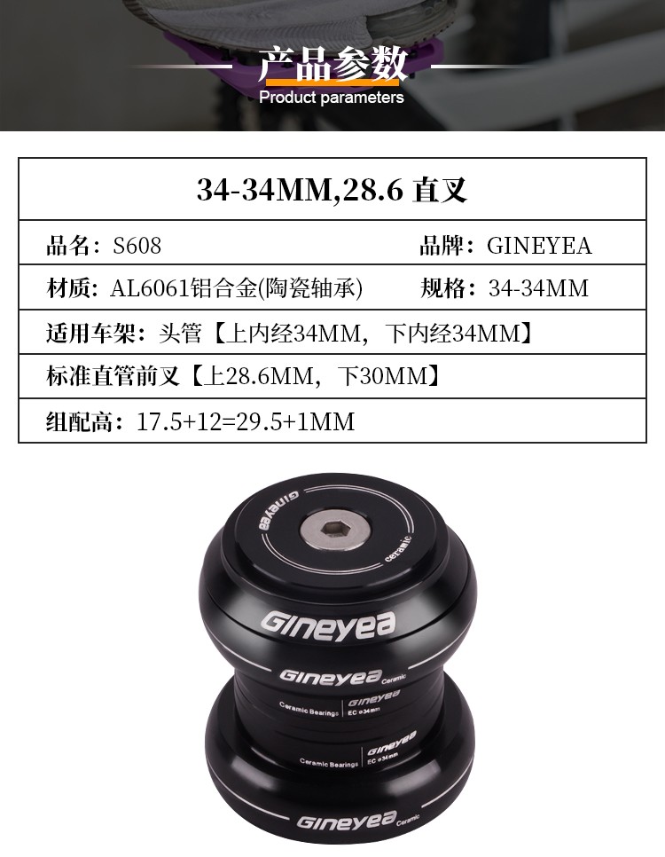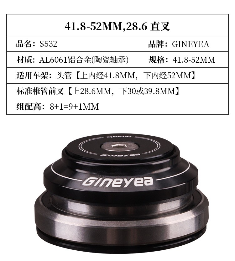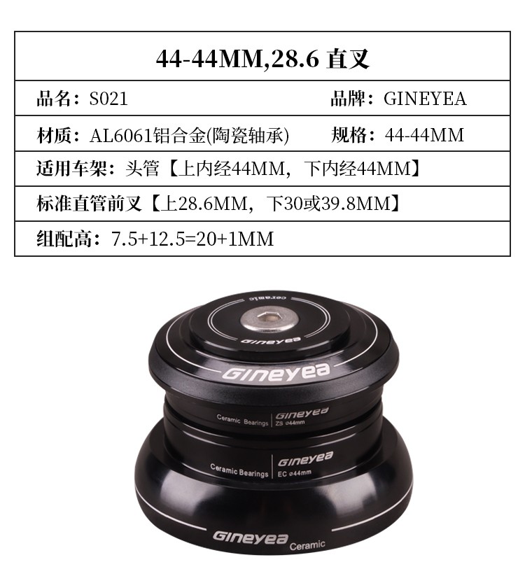 景曄自行車前叉腕組陶瓷軸承直管34/44/41/41.8mm椎管44-50.6/56