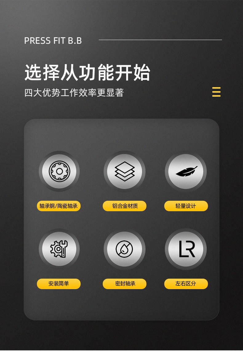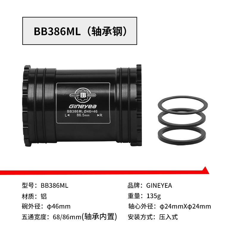 景曄386中軸山地公路自行車對鎖式中軸24/29中空一體牙盤壓入式