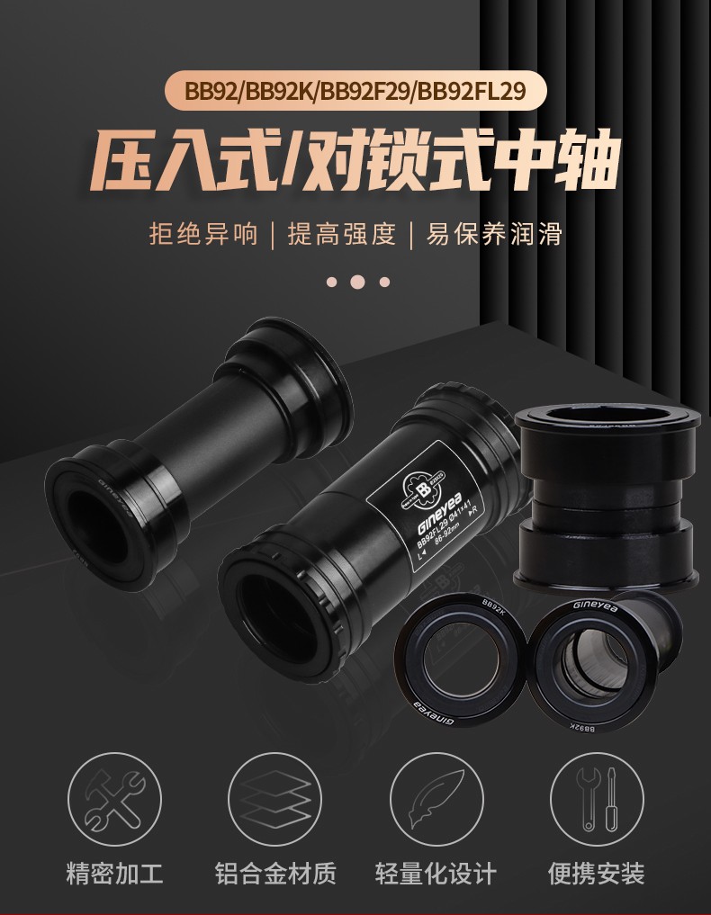 景曄山地自行車培林對鎖中軸中空一體牙盤BB中軸壓入式螺紋中軸