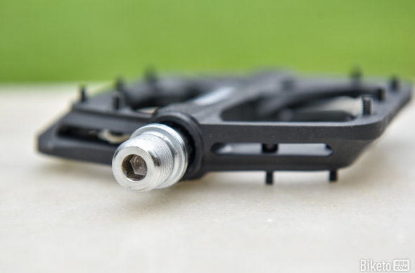 景曄M996自行車腳踏的每一面都有八顆可拆卸銷釘,可以杜絕腳底打滑的情況,大力搖車加速也不會(huì)踩空。